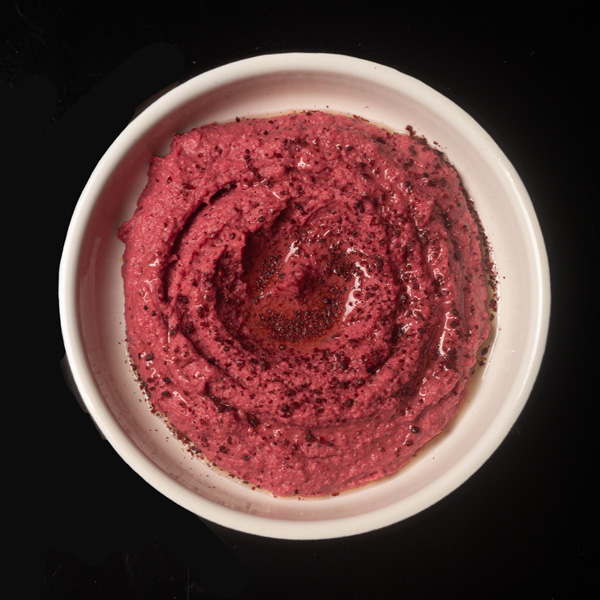 Pois chiche, tahin, ail, citron, cumin, betterave